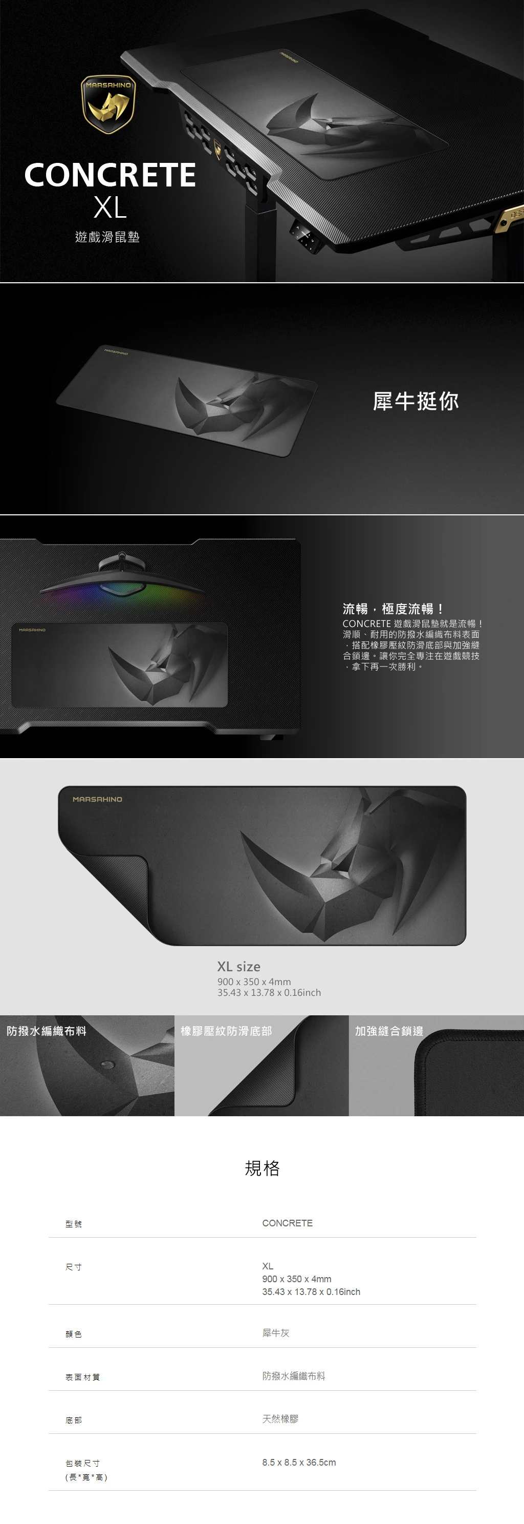 {{emb:products-main/banner}}產品系列:: 滑鼠墊 :: CONCRETE XL 水泥XL功能 ● 極度滑順 ● 防潑水編織布料 ● 加強縫合鎖邊 ● 僅限新品瑕疵可更換新品 ● 保固細則請詳閱官網說明規格 黑色價格NTD $ 990 元 990運費免運費數量:商品說明