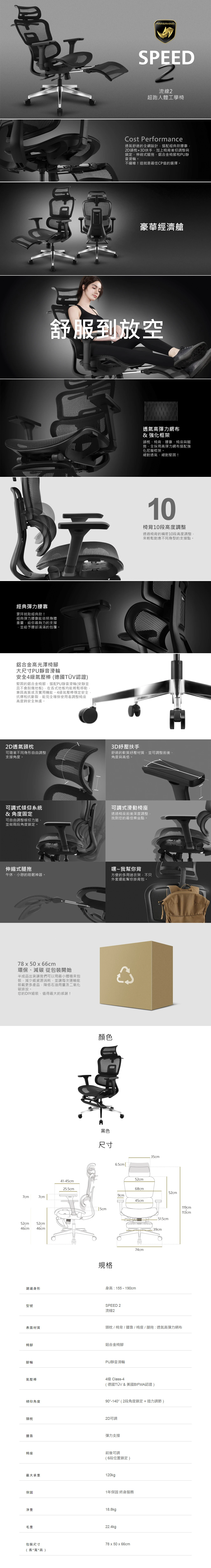 ● 最大承重120公斤 ● 1年保固 ● 商品須自行簡易安裝,組裝前請詳閱說明書 ● 保固細則請詳閱官網說明